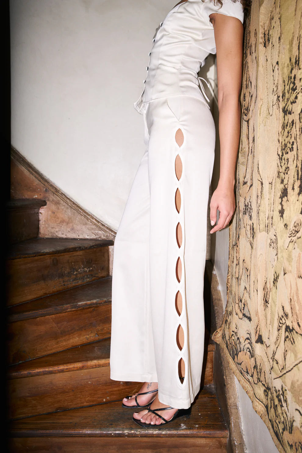 The Suki Top in Ecru reimagines everyday elegance with refined design touches. Featuring a curved scoop neckline enhanced by scalloped cut-outs and fabric-covered buttons, it brings a delicate yet modern aesthetic to your wardrobe. Crafted from sustainable Tencel — a fibre derived from recycled wood pulp — the soft twill texture and gentle sheen add both comfort and understated sophistication to your look.